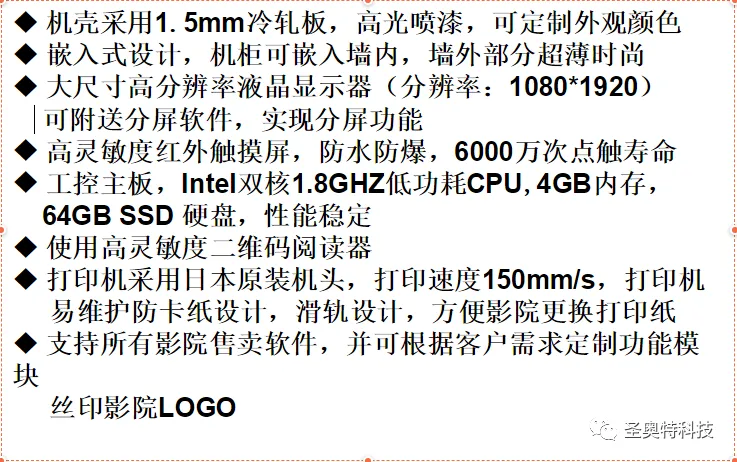 新天影城隸屬于深圳市新思凱壹方天地影院管理有限公司,新開業(yè)的萬科廣場店坐落于美麗的龍崗區(qū)。萬科廣場店大堂以黑色為基調(diào),黑暗夢幻般的色調(diào)使整個大堂寬敞宏偉,給人以神秘、令人不能忘懷的印象。新天影城此次選用了圣奧特最為經(jīng)典的黑色系列K450嵌入式取票機(jī)。圣奧特還專為新天影城設(shè)計了獨具風(fēng)格的經(jīng)典黑加典雅紅款式,和整個大堂的裝修風(fēng)格渾然一體。